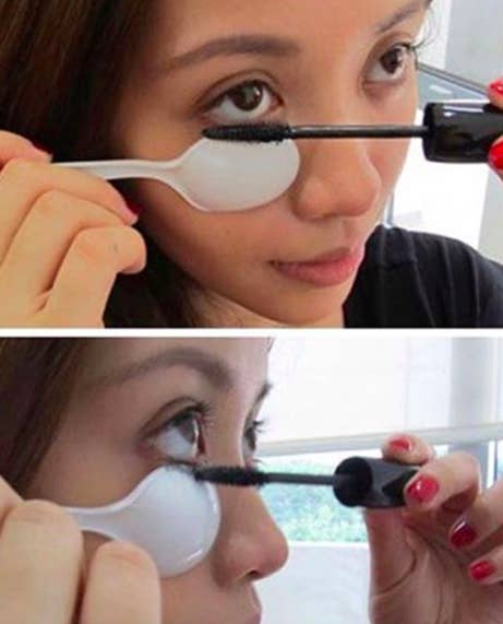 3. "Use a piece of card (or something similar) behind your lashes while putting on your mascara so you don't accidentally streak it onto yourself when applying."